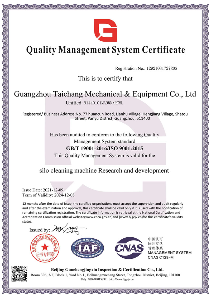 廣州市泰昌機械設備有限公司公司致力于工業機械化生產,專業研發和生產自有專利的自動化筒倉清理設備,有一整套筒倉清理系統及解決方案。